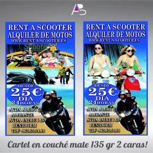 Cartel en soporte de 135 gr couche brillo impreso a todo color 2 caras