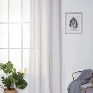 Cortinas De Visillo Tránslucido Lino y Poliéster Decorado Con Líneas Blancas Verticales