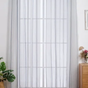 Cortinas De Visillo Gasa Lino y Poliéster Decorado Con líneas Verticales