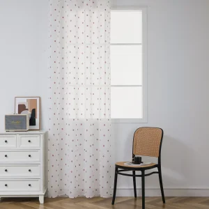 Cortina De Visillo Lino Y Poliéster Con Bordado De Flores