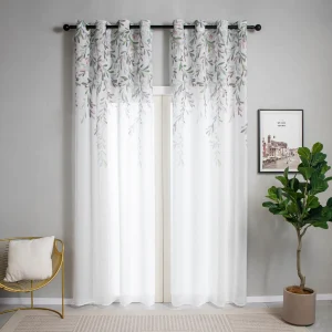 CORTINA DE VISILLO DE HILO ESTAMPADO DE HOJAS DE SAUCE 140X260CM