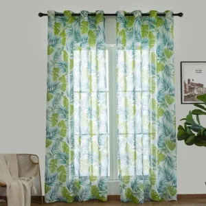 Cortina De Visillo Gasa Poliéster Con Diseño De Hojas De Palmeras 140x260cm