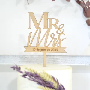 Topper boda Mr&Mrs con fecha grabada