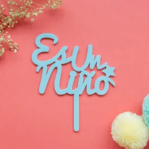 Topper Feliz Cumpleaños estrella madera + nombre en relieve acrílico
