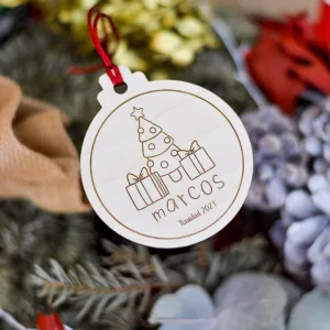 Bola Navidad madera dibujo infantil personalizado