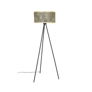 Lámpra de pie Isla en bambú y metal con pantalla Natural & Black