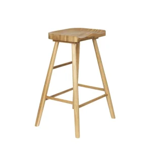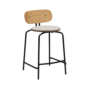 Taburete alto Curious en madera de roble y acero tapizado White Sands
