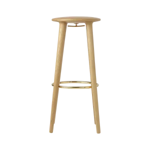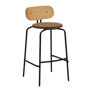 Taburete alto Curious en madera de roble y acero tapizado Sugar Brown