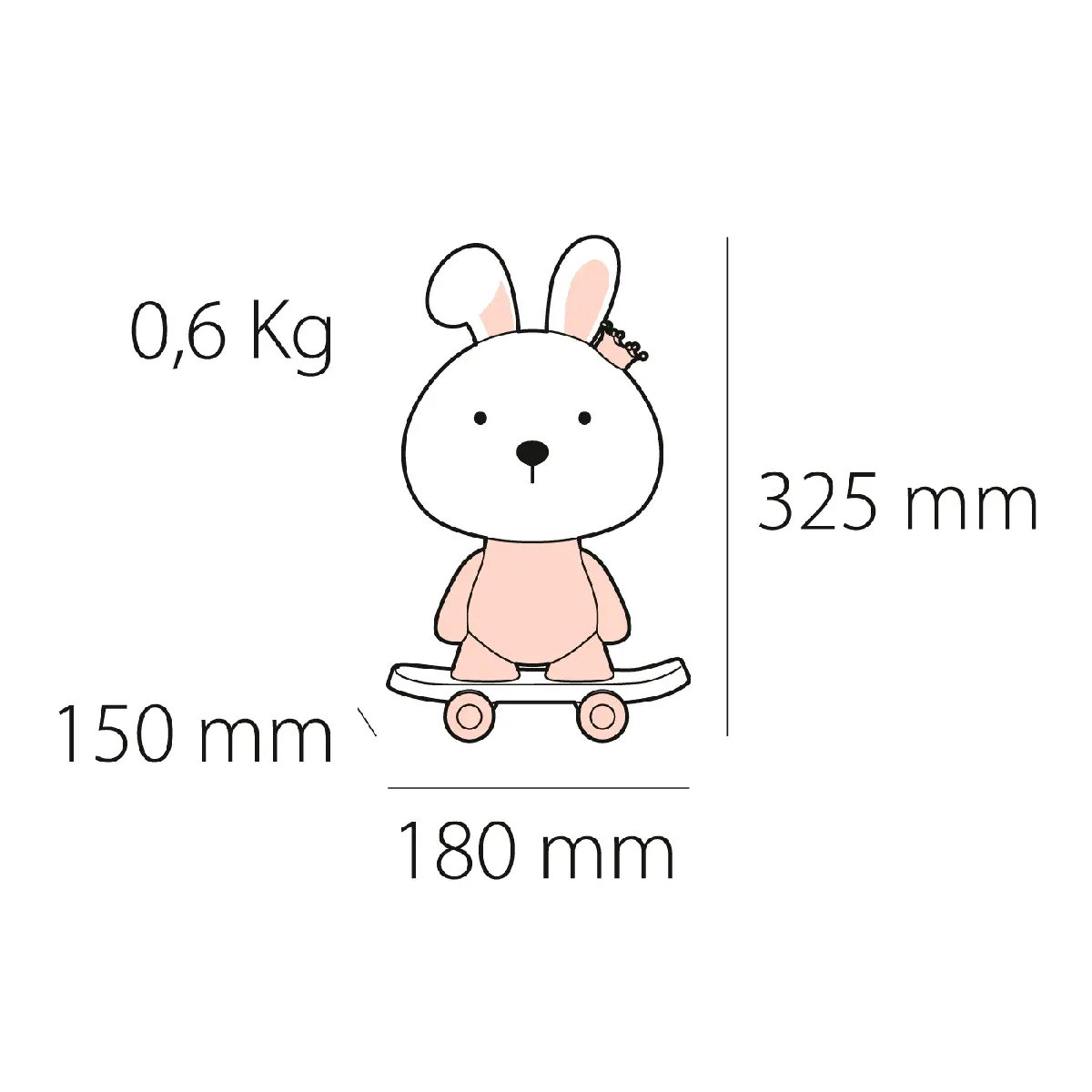 La lámpara Sobremesa Conejo es el complemento perfecto para iluminar la habitación de los más pequeños de la casa. Su encantador diseño, con la figura de un conejito montado en un monopatín, no solo ilumina, sino que también decora con su estilo divertido y dulce. Fabricada con materiales resistentes y de calidad, garantiza durabilidad y seguridad. Además, su luz suave y cálida crea un ambiente relajante ideal para acompañar las horas de juego o lectura. Con un tamaño compacto, se adapta a cualquier mesita de noche o escritorio. ¡Una lámpara que encanta tanto a los niños como a los adultos! Perfecta para regalar y llenar de magia cualquier espacio infantil.