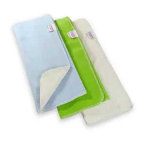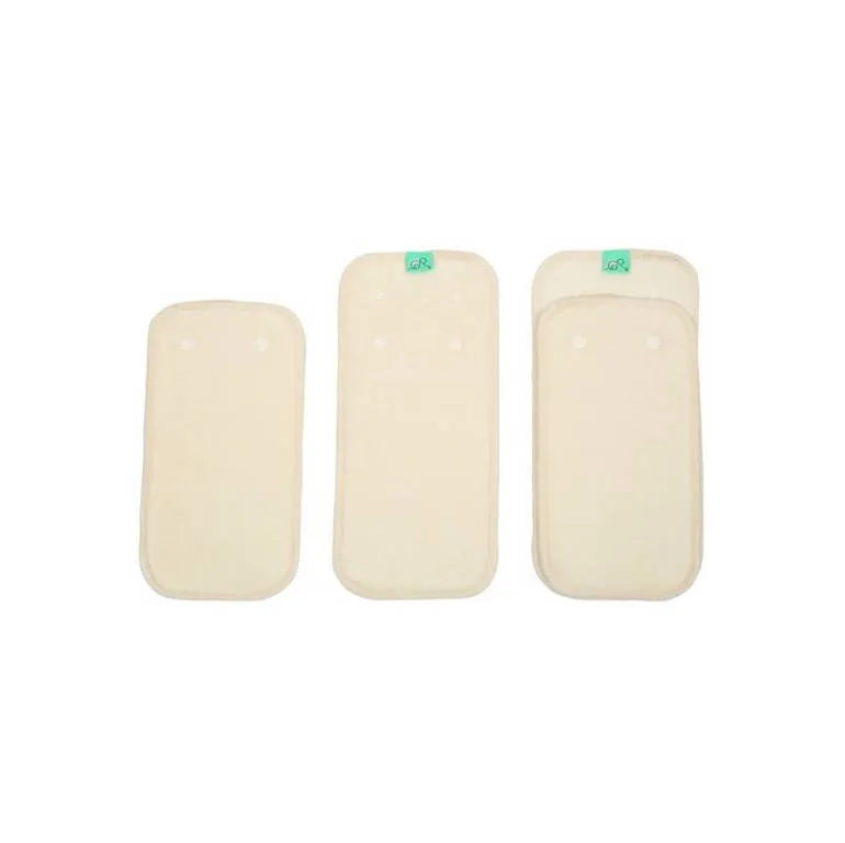 Los absorbentes están confeccionados en bambú (en el exterior) con una capa interna de microfibra y tienen certificado Oeko-Tex 100. Se secan rápidamente y tienen una gran capacidad de absorción.