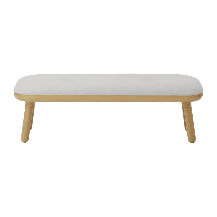 El banco Paff es una pieza versátil, que puedes colocar como un asiento para ponerte los zapatos, en el salón como un extra para recibir invitados o en la habitación creando un rincón acogedor. Su diseño minimalista y funcional lo convierte en una pieza adaptable a cualquier interior moderno. Con una base de madera maciza de roble, su estructura sostiene un asiento tapizado en un textil color gris muy claro, un tono neutro que combina fácilmente con distintos estilos de decoración. Esta versión baja de 30,5 cm de altura, con patas cortas, ofrece una medida cómoda y práctica para diversas situaciones.