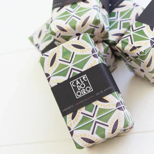 – Cerámica esmaltada a mano en color mint como predominante