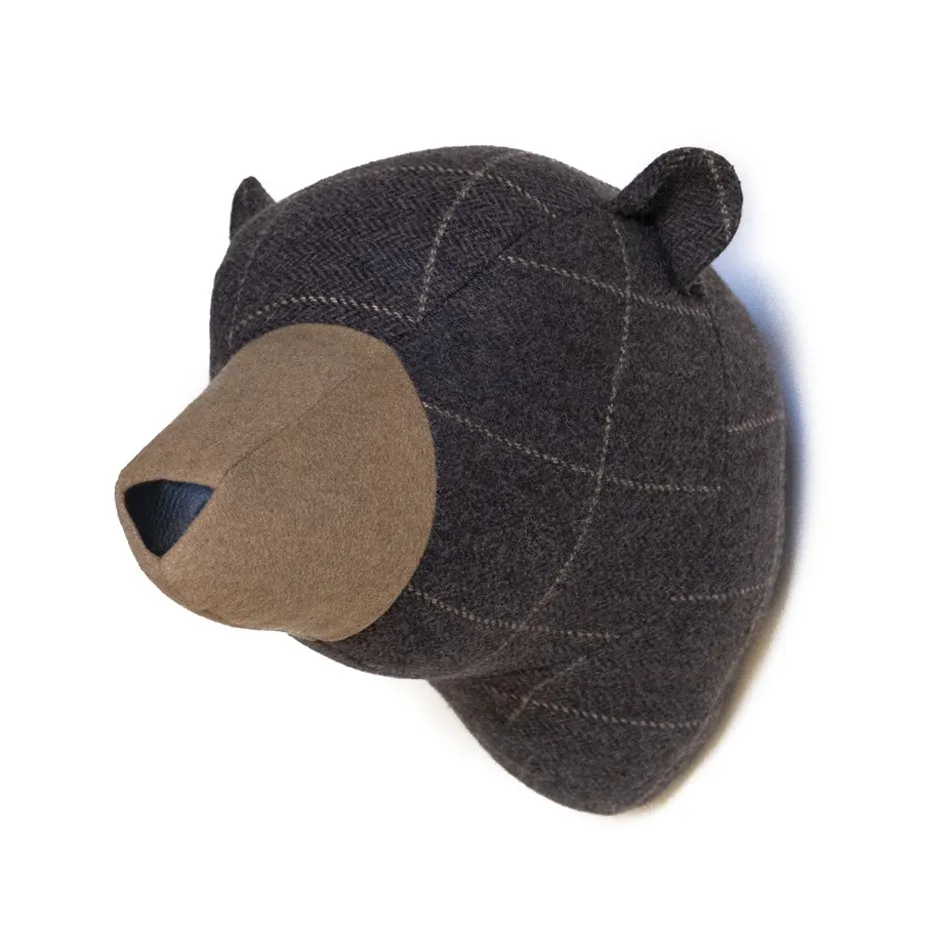 La cabeza decorativa de oso Bear Hazel es una pieza única y encantadora, fabricada a mano en felpa y forrada con una elegante tela de cuadros. Esta original decoración está elaborada con un interior de fibras huecas prensadas, lo que le otorga una textura suave y acogedora. Los cuernos, realizados en madera de balsa, aportan un toque natural y auténtico a su diseño. Perfecta para añadir un elemento divertido y acogedor a habitaciones infantiles o para complementar la decoración de casas de montaña.