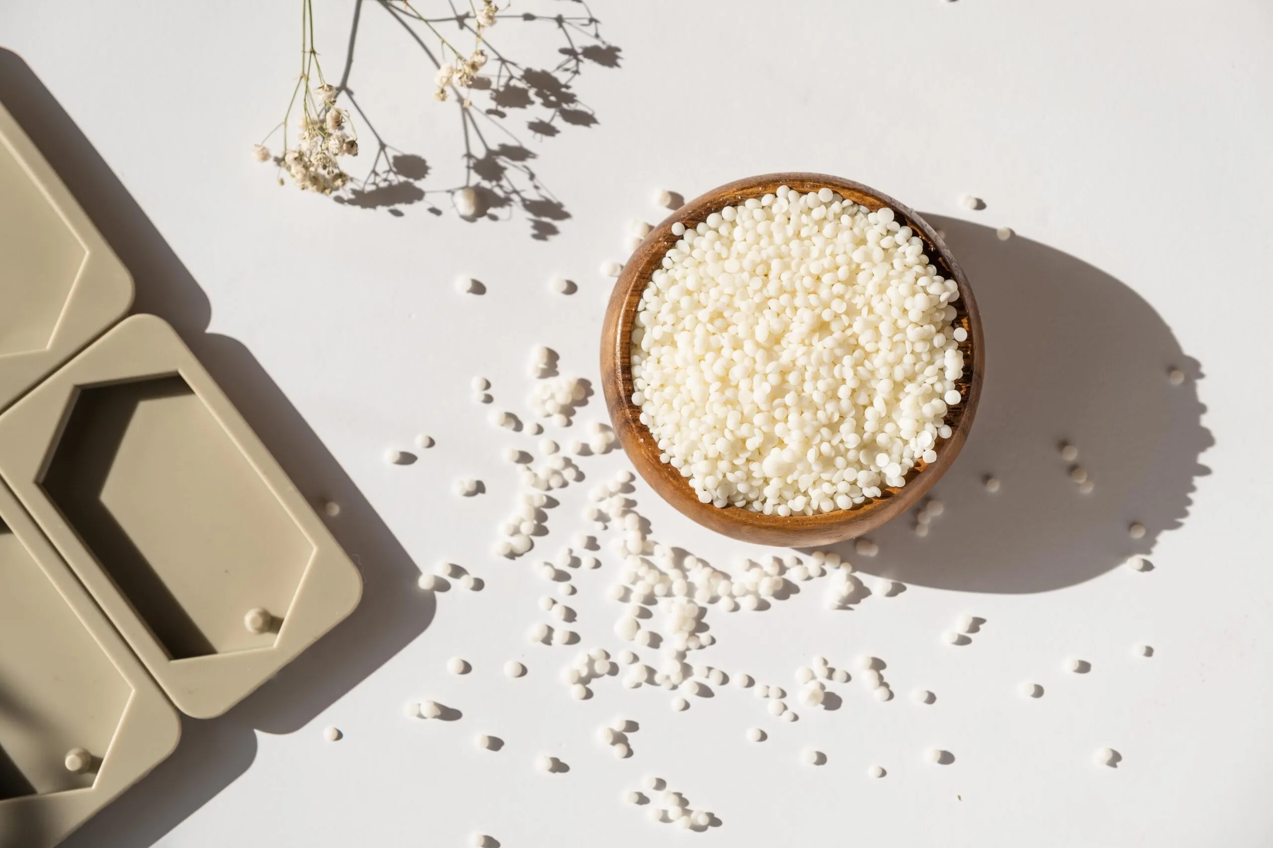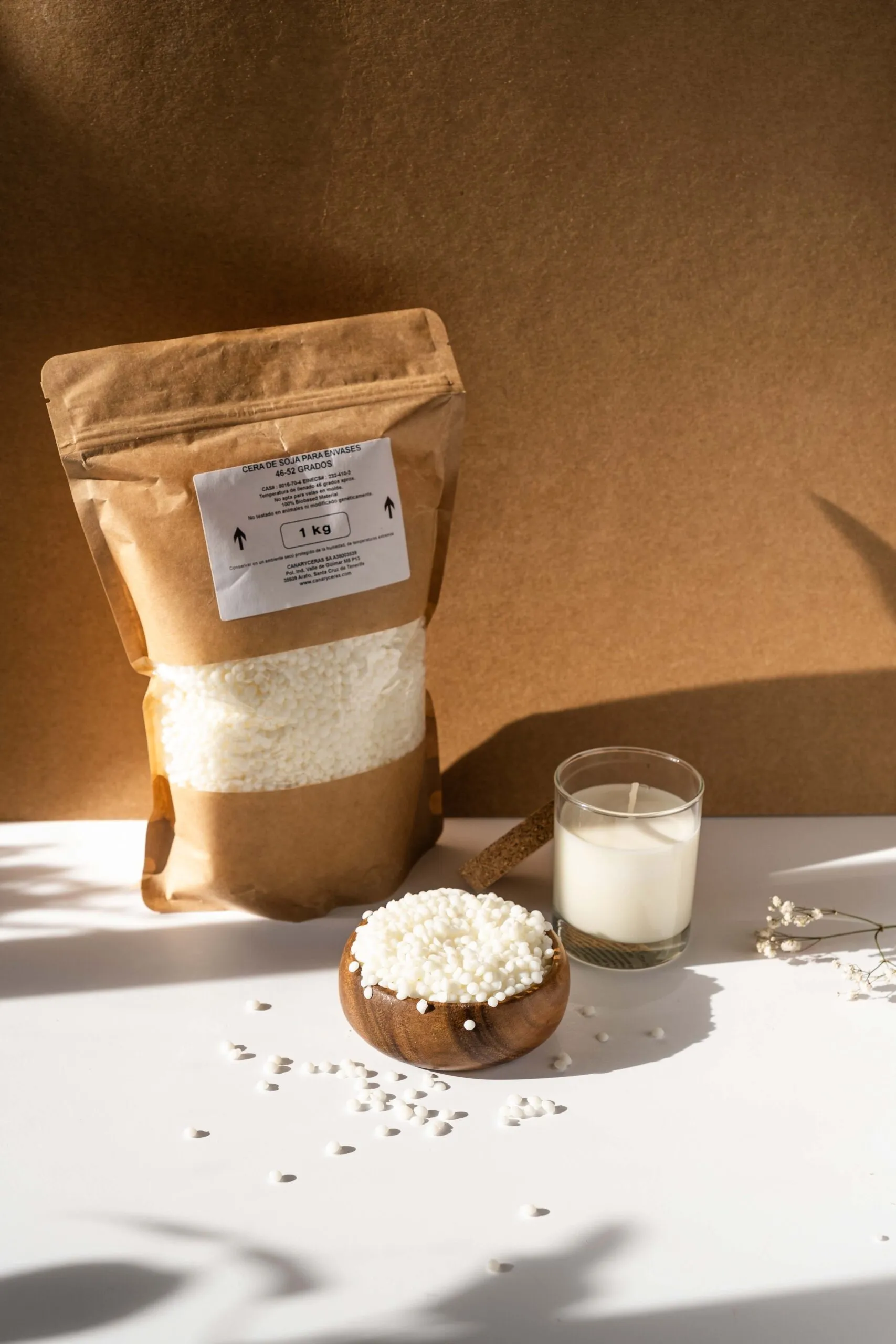 Cera de soja en formato perlas de 46-52 grados de punto de fusión para la fabricación de velas en recipiente.