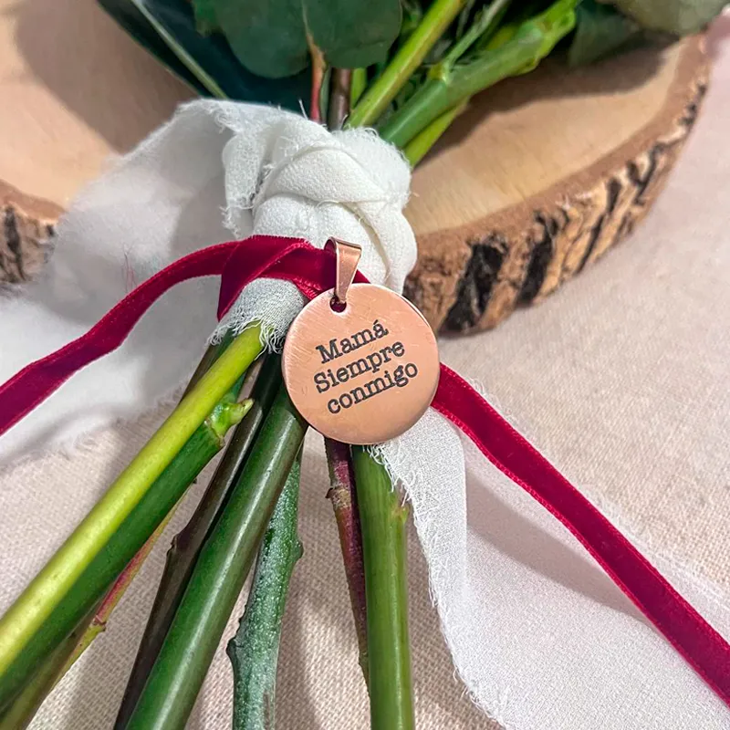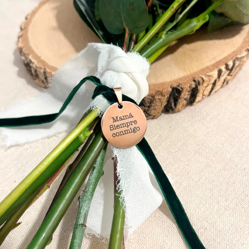 Nuestras chapitas personalizadas son ideales para llevar en el ramo de novia y recordar a alguien importante en un día tan especial.