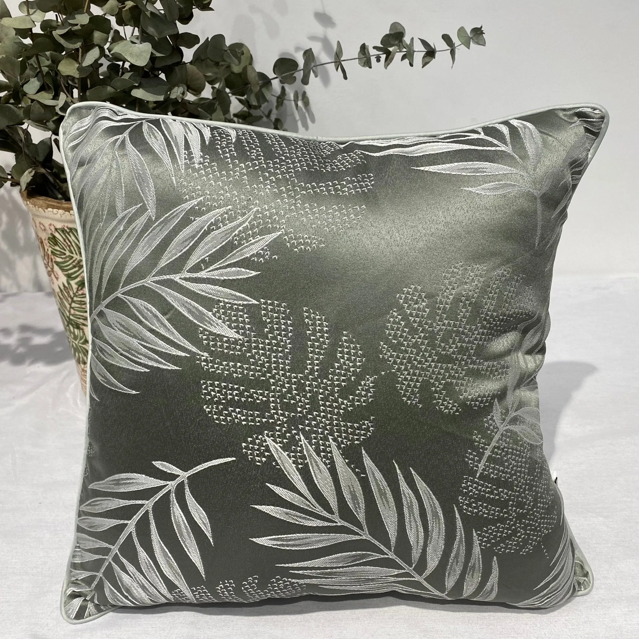 🧶【LUJO TEXTURIZADO】: Sumérgete en el lujo con nuestros cojines Jacquard, con un patrón tejido en relieve que añade elegancia y sofisticación a cualquier espacio.
