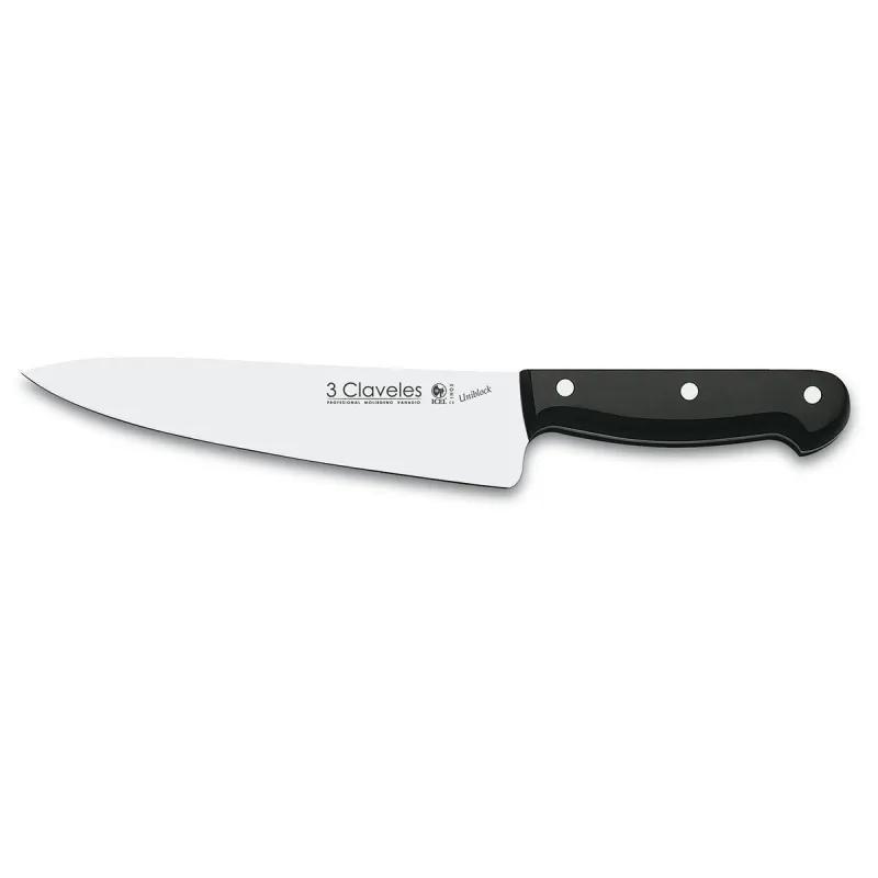 El cuchillo cocinero Uniblock, también conocido como cuchillo cebollero o cuchillo de chef, es la herramienta multiusos de los profesionales y cocineros aficionados que limpia, corta y pica todo tipo de carnes, vegetales, aves y pescados.