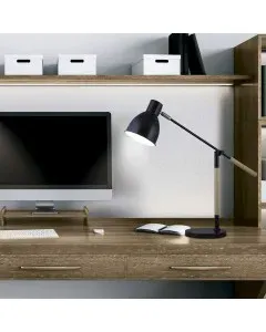 El Flexo Ristori Negro-Madera de la colección Ristori es un elegante flexo de sobremesa que destaca por su diseño natural y minimalista. Fabricado en metal con detalles de madera, es compatible con bombillas E27 (no incluidas) de hasta 60W, incluyendo opciones LED. Este flexo es perfecto para iluminar cualquier estancia, proporcionando una luz suave y acogedora gracias a su diseño sencillo y su estructura bien equilibrada, ideal para crear un ambiente cálido y moderno.
