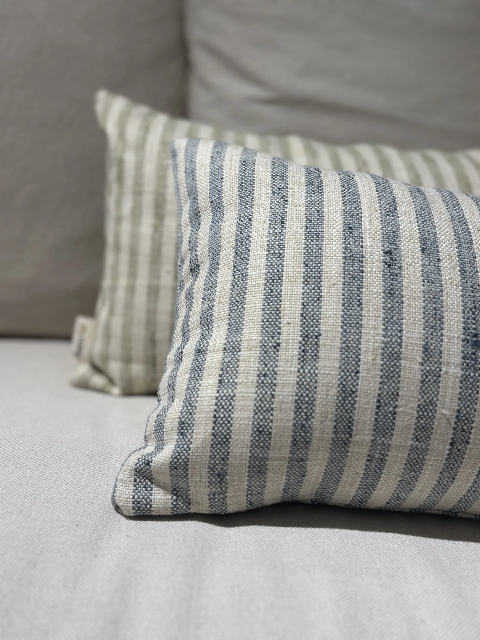 Esta funda confeccionada a mano en poliéster 100%, presenta un atractivo diseño de multiraya en tonos azul y natural con textura rústica. Esta funda es un reflejo de nuestro estilo y esencia, una pieza decorativa especial, elaborada con mucho mimo. En la creación de nuestra colección de diseño propio, SUENH Signature, nos dejamos llevar por la creatividad, inspirando viajes a través de piezas únicas que capturan la simplicidad y resaltan la belleza de los materiales naturales. Disponible en diferentes tamaños, colores y texturas.