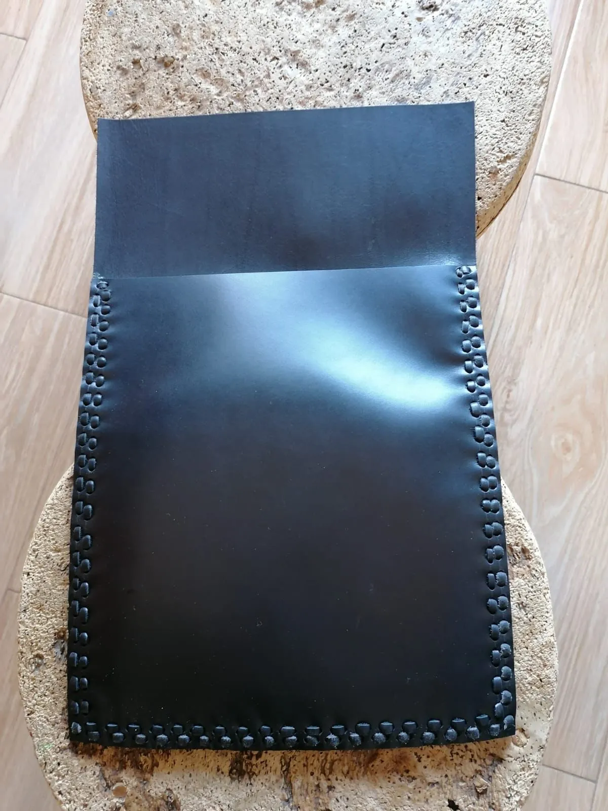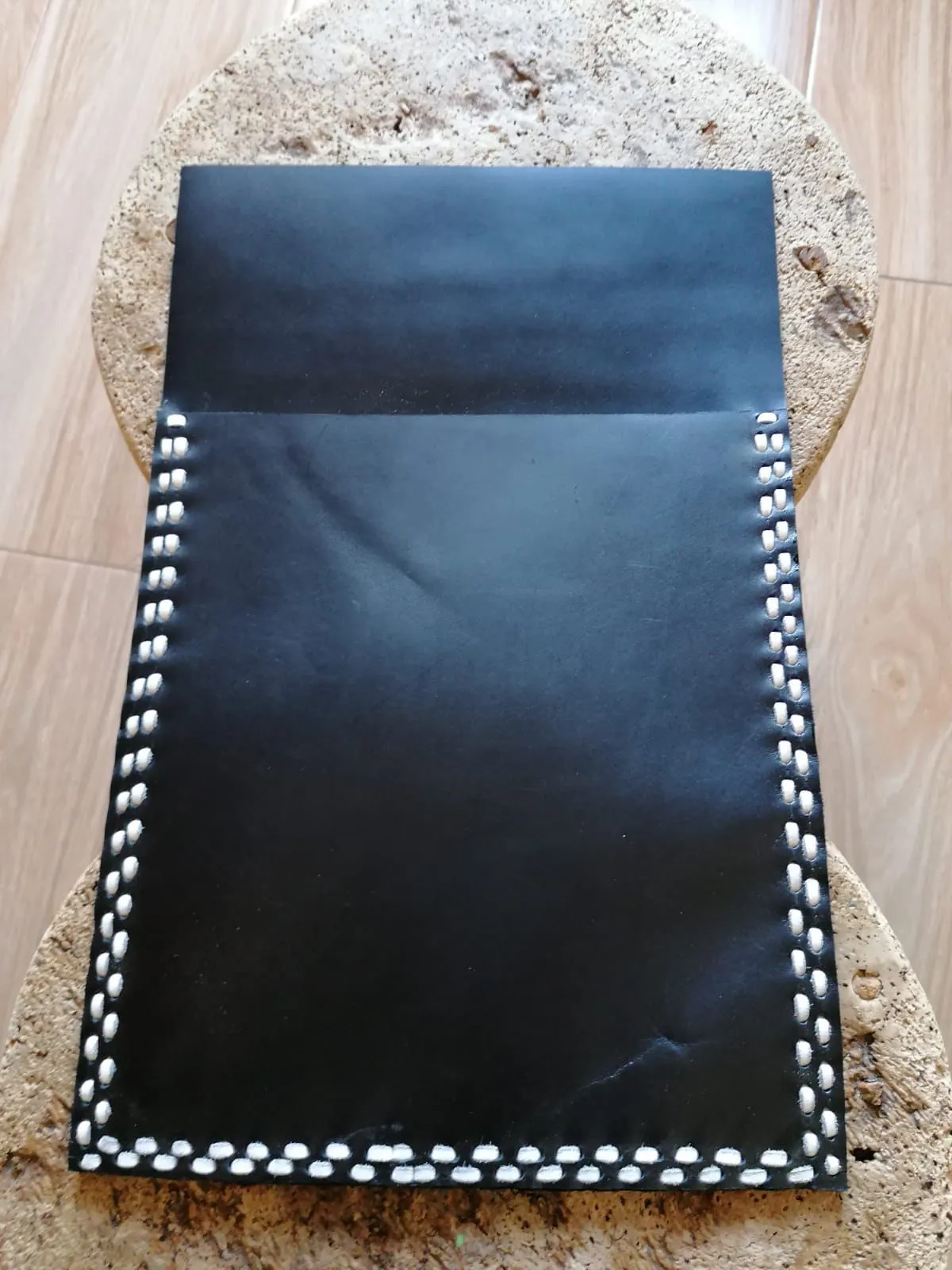 Funda de cuchillos echa a mano, realizada en Cuero Natural de color negro.