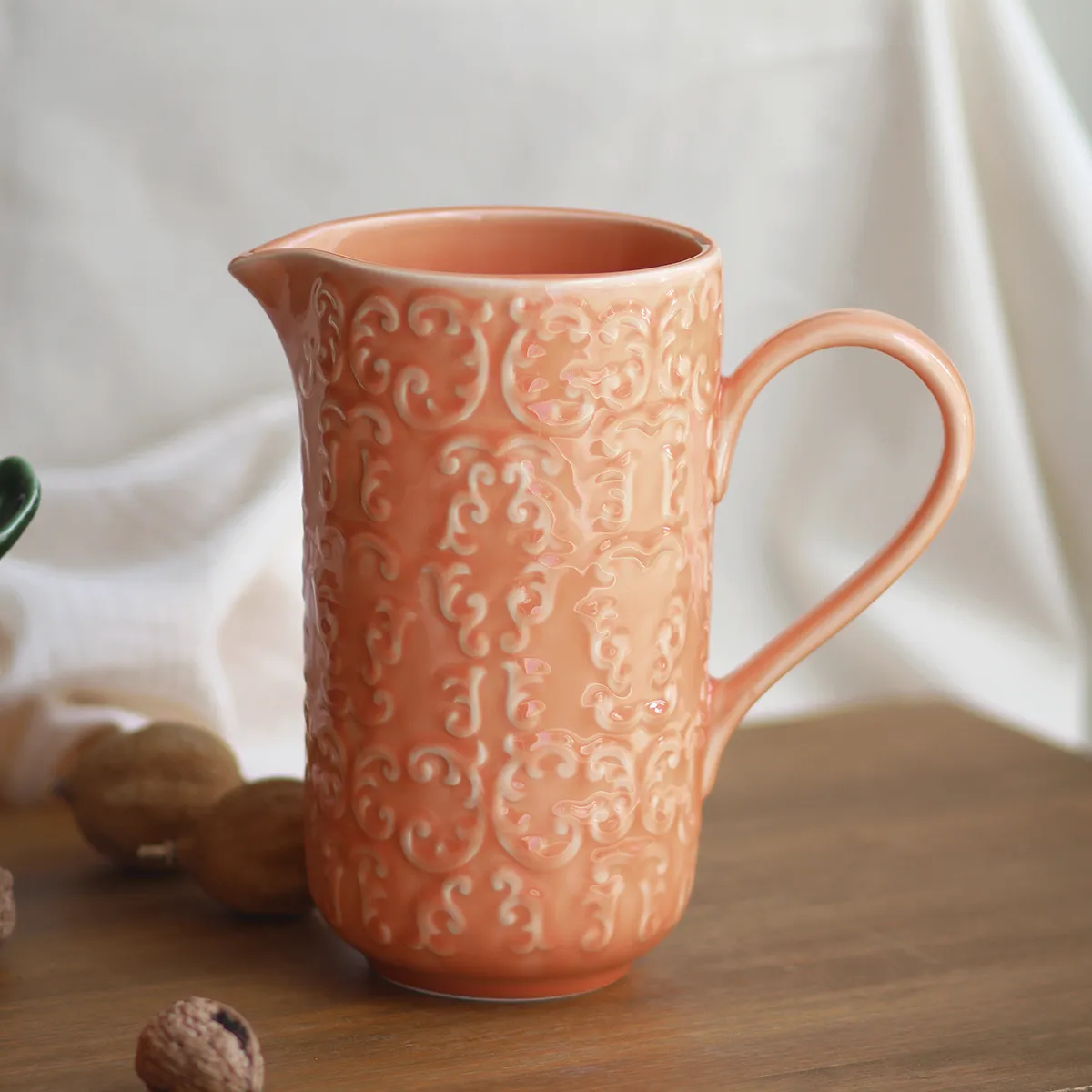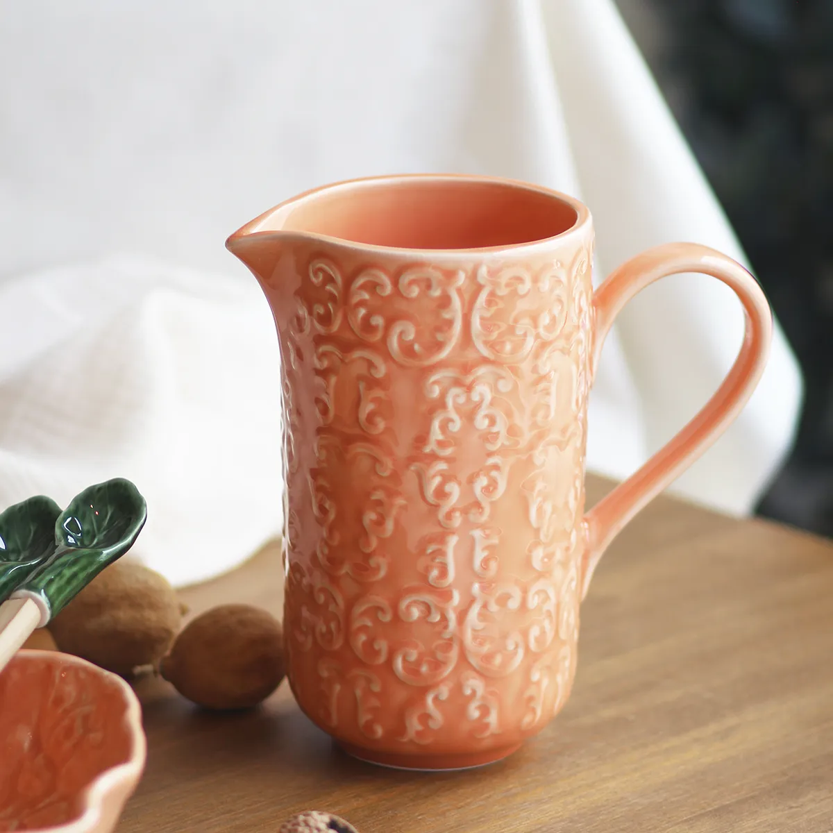 – Cerámica esmaltada a mano en color coral