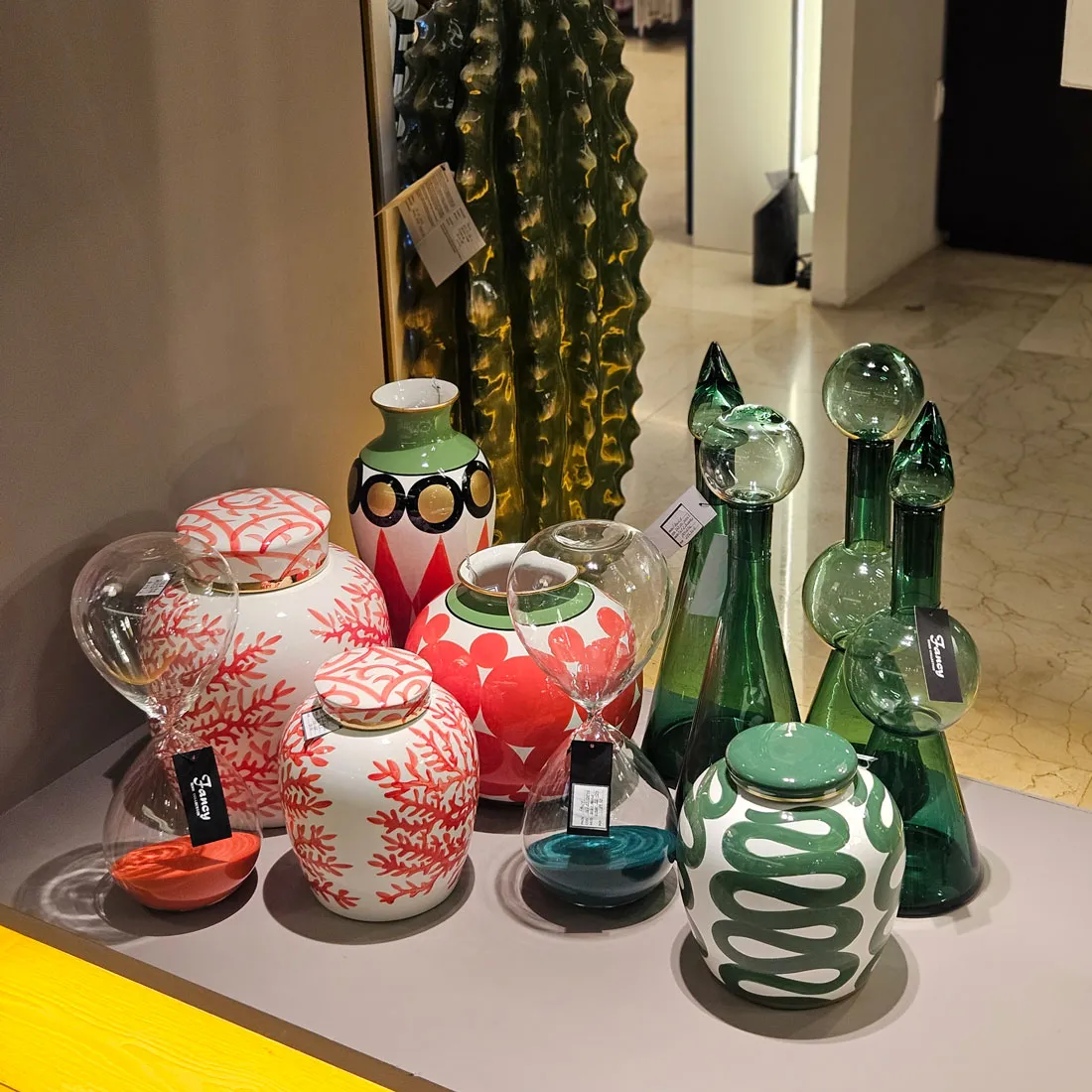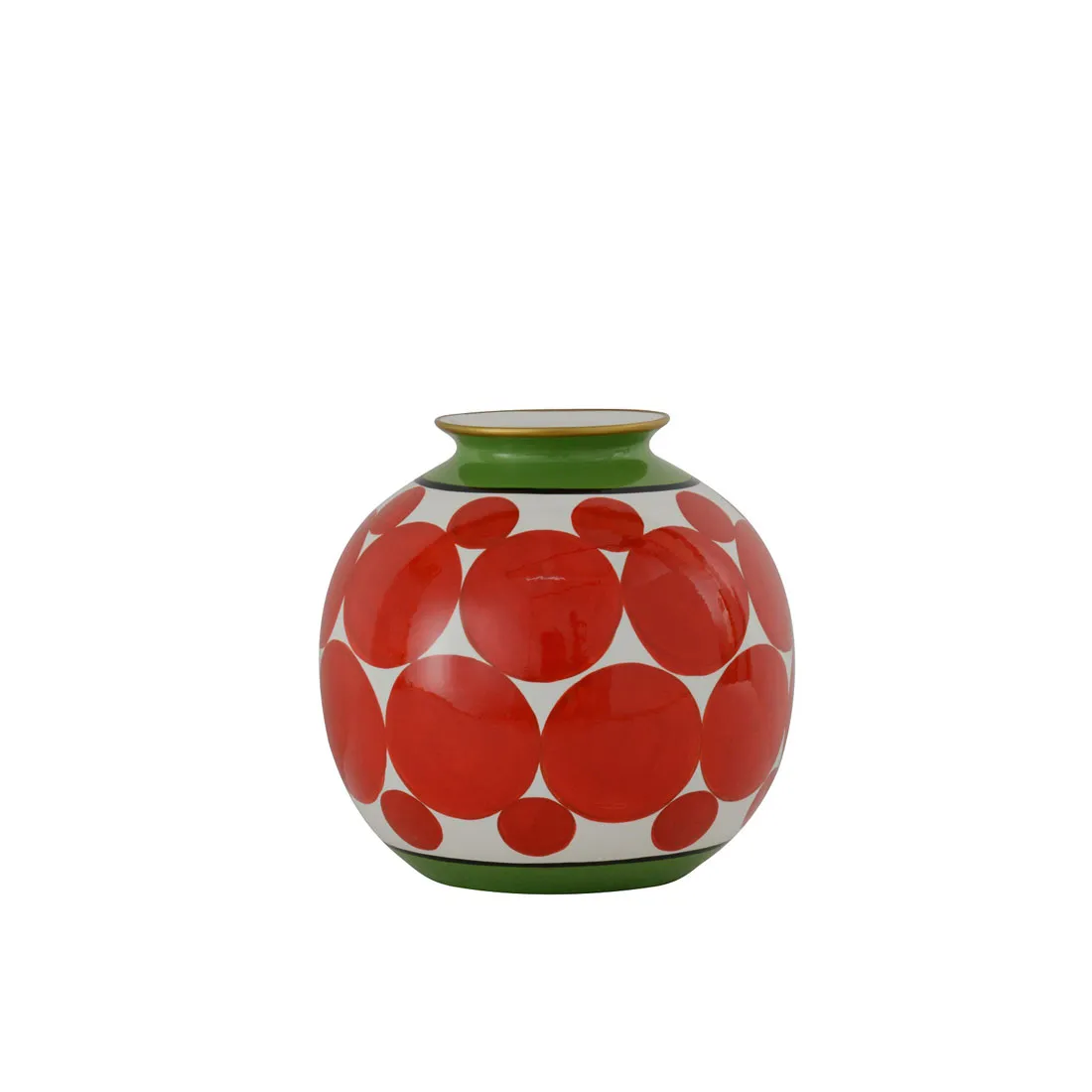 Jarrón Brasilia alto de cerámica multicolor en coral, verde y blanco.