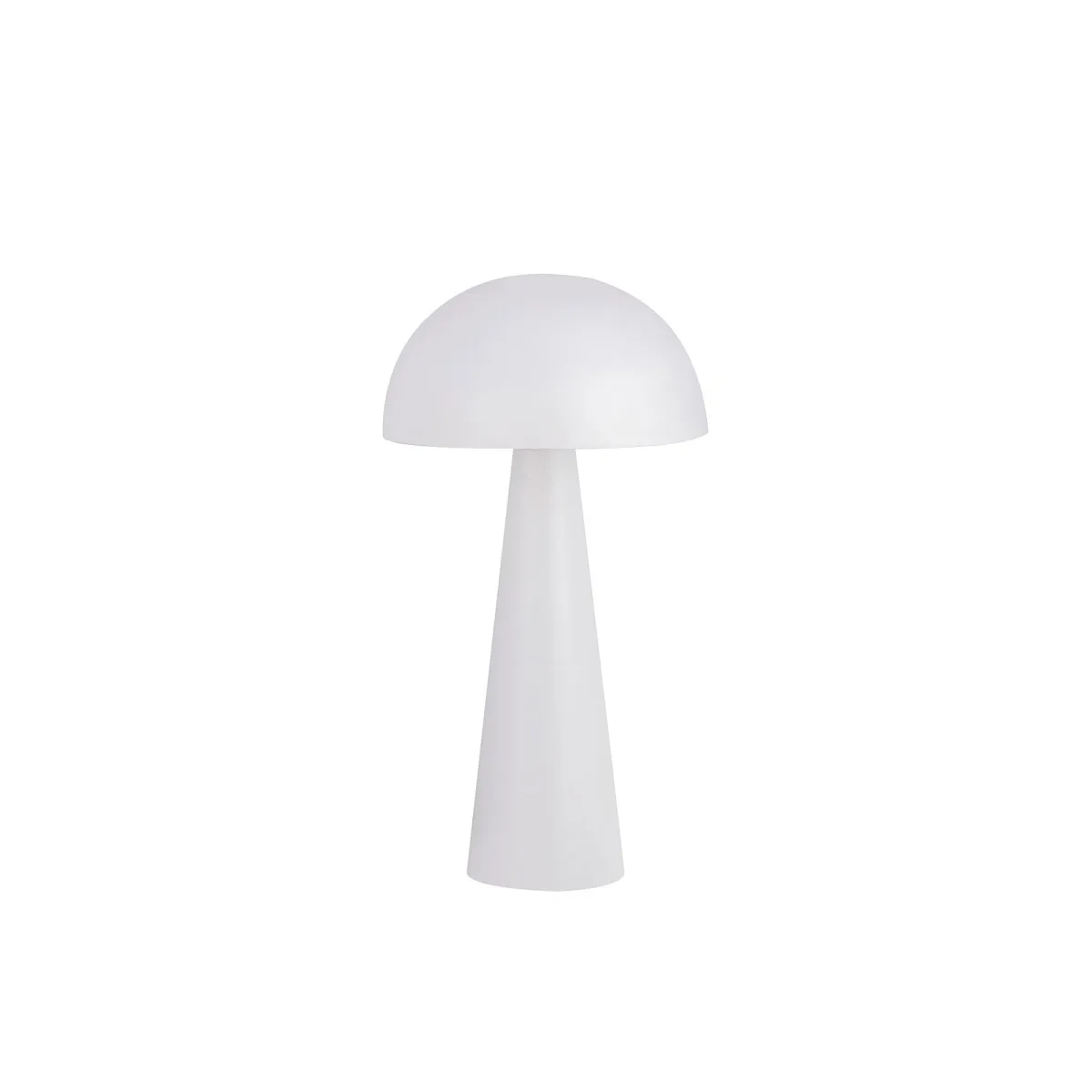 Lámpara de sobremesa o de pie con base y pantalla de metal blanco.