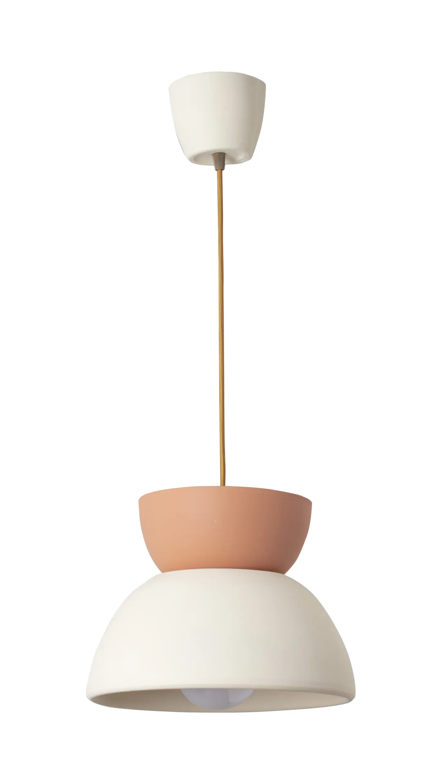 Esta lámpara colgante de cerámica en color blanco y terracota es una pieza de artesanía perfecta para quienes buscan añadir un toque único y cálido a su decoración. Su diseño original, con suaves curvas y una elegante combinación de colores, la convierten en una opción ideal para cualquier ambiente contemporáneo o rústico. La cerámica utilizada es de alta calidad, garantizando tanto resistencia como durabilidad. Con unas medidas de 22 cm de alto y 28 cm de diámetro, esta lámpara es ideal para iluminar espacios como salones, cocinas o comedores, proporcionando una luz acogedora y suave. Su instalación es sencilla, y gracias a su diseño versátil, se adapta fácilmente a cualquier tipo de techo. Dale a tu hogar un toque de estilo y personalidad con esta lámpara colgante de cerámica blanca y terracota. Disponible en Lámparas Móstoles.