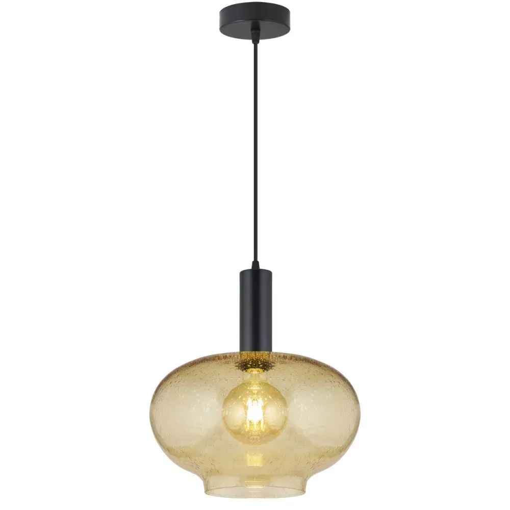 La lámpara colgante Pataias se destaca por su pantalla de vidrio ámbar, la cual emite una luz cálida y acogedora, perfecta para crear un ambiente relajante en cualquier espacio. Su diseño moderno combina un acabado negro mate con el tono ámbar del vidrio, logrando una mezcla de estilos contemporáneo e industrial. Ideal para comedores, salones o cocinas, esta lámpara es una excelente opción decorativa que añade personalidad a cualquier habitación. El modelo Pataias no solo proporciona una iluminación eficiente, sino que también es un elemento decorativo que realza el estilo de interiores modernos.