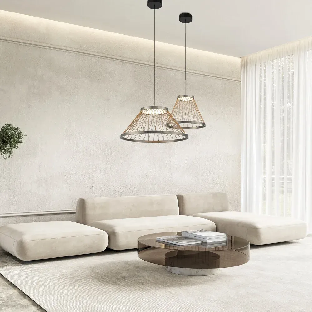 El cable negro de 1,5 metros ofrece flexibilidad en la instalación, permitiendo que se adapte a distintas alturas y configuraciones de tu espacio. La combinación de materiales y acabados hace de esta lámpara una opción moderna y funcional, ideal para quienes buscan calidad y estilo.