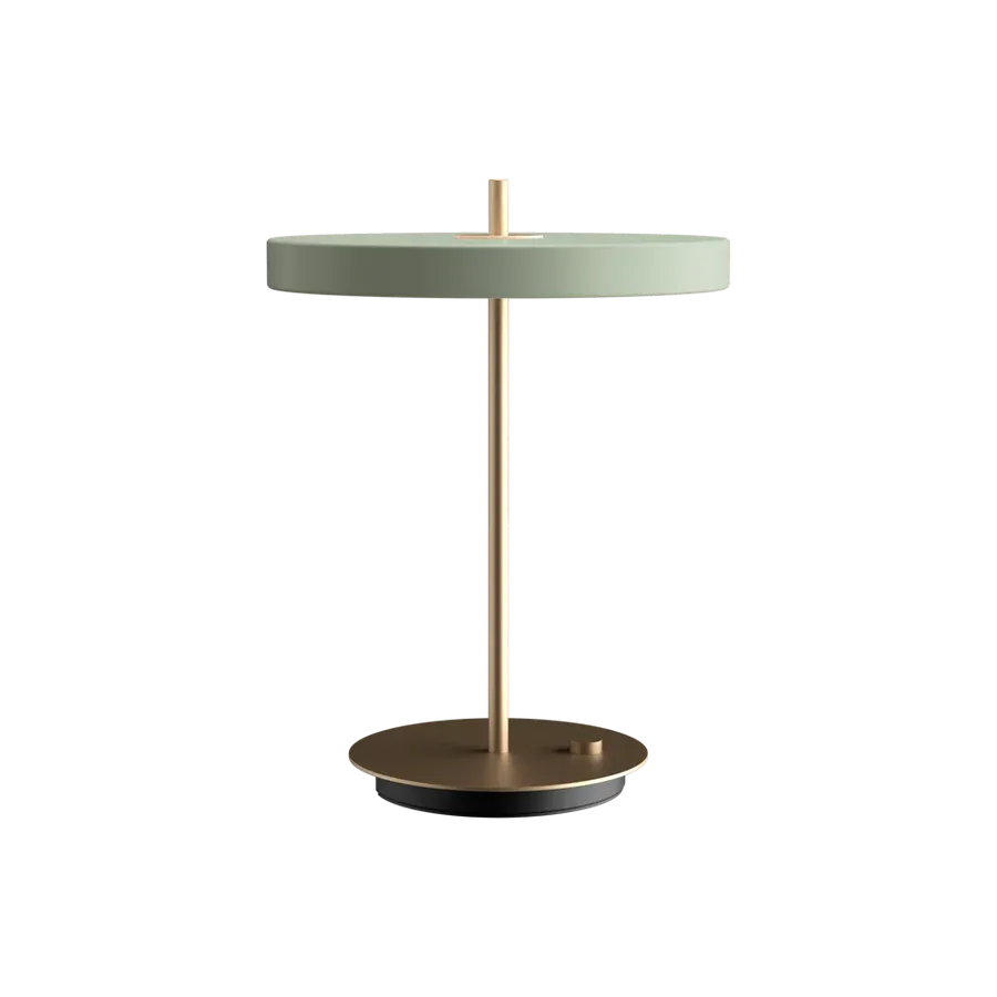 La lámpara de mesa Asteria, de la marca Umage, fabricada en acero, aluminio y acrílico con un acabado en verde oliva claro, combina elegancia y funcionalidad. Diseñada por Søren Ravn Christensen, su diseño permite moverla fácilmente de un lugar a otro sin la necesidad de cables. La lámpara se recarga de manera sencilla mediante un cable incluido y también incorpora un puerto USB oculto, lo que permite cargar el teléfono incluso cuando la lámpara está apagada. Su pantalla redonda y plana, junto con una base delgada, la convierte en una opción ideal tanto para decorar una mesita de noche como para aportar un toque de elegancia a una ventana. Además, su panel LED integrado con difusor garantiza una luz suave y sin deslumbramiento, con intensidad regulable.