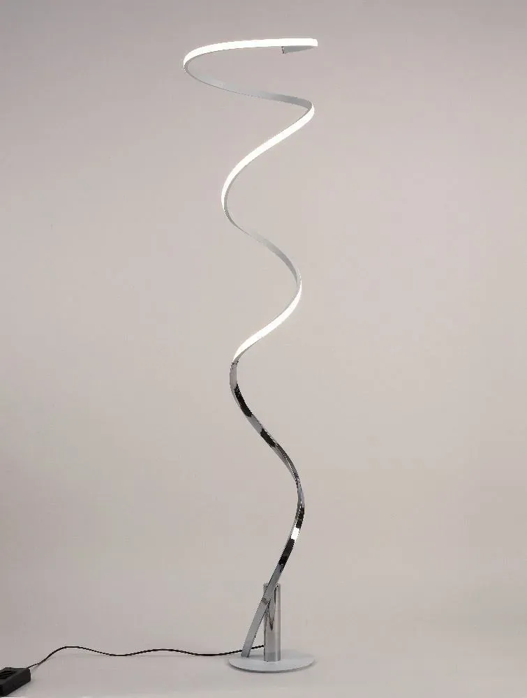 La lámpara de pie HELIX se distingue por su estructura en forma de hélice, fabricada con materiales de alta calidad como aluminio, acrílico y acero, con un acabado en plata-cromo que le confiere un aspecto sofisticado. Equipada con una fuente de luz LED integrada de 42W, emite una iluminación cálida de 3000K con una intensidad de 3360 lúmenes, ideal para crear ambientes acogedores en salones, dormitorios u oficinas. Además, cuenta con función dimable, permitiendo ajustar la intensidad lumínica según las necesidades del usuario. Sus dimensiones son: altura de 180 cm y diámetro de 38 cm, lo que la hace adecuada para diversos espacios.