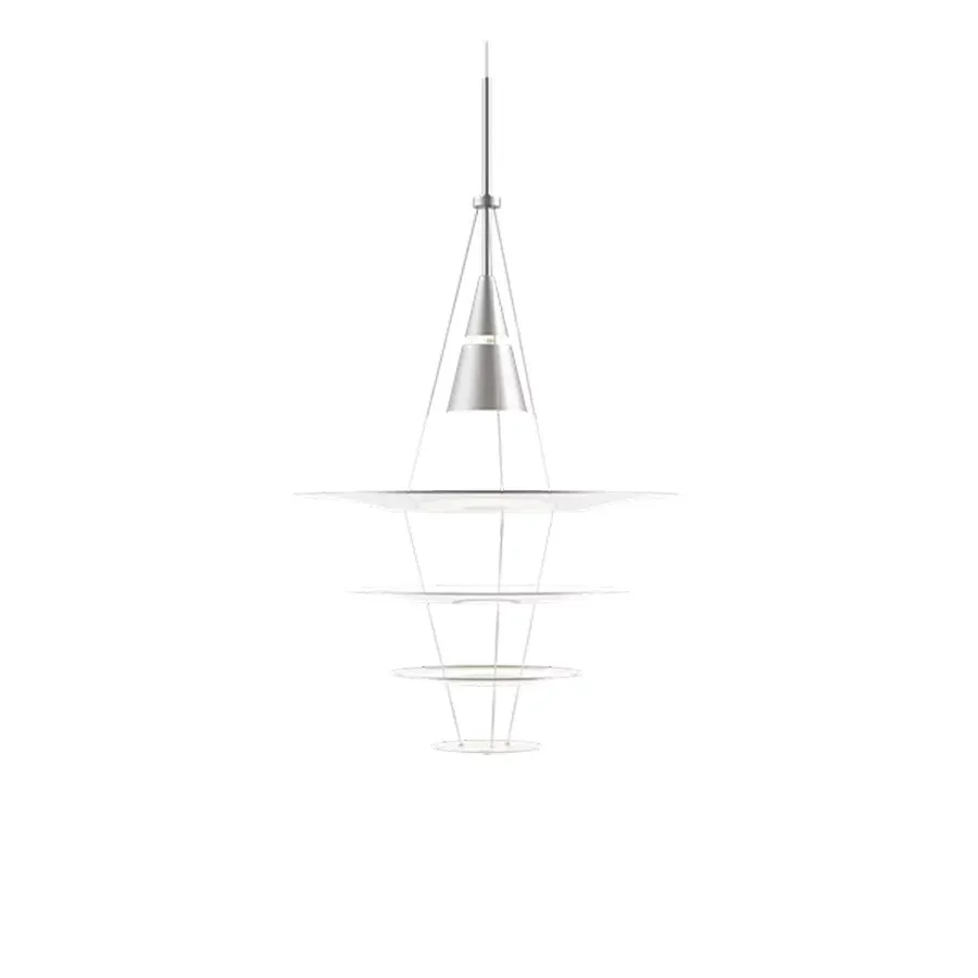En el año 2003, el diseñador japonés Shoichi Uchiyama diseñó la Enigma 425. Uchiyama presentó a Louis Poulsen una idea de diseño que rompía el tradicional concepto de lámpara de araña para transformarlo en unas finas láminas de círculos concéntricos. El diseño estaba protagonizado por unas pantallas flotantes sujetas por unos hilos ultrafinos, aportándole una presencia transparente y ligera. La palabra «enigma» simboliza misterio, un guiño al efecto de las pantallas encendidas que, a cierta distancia, parecen levitar. La idea encajaba a la perfección con la filosofía de producto de Louis Poulsen y daba un nuevo sentido al sistema de multipantalla reflectora. La elegancia japonesa se fundía con la sencillez escandinava. Este 2018, la versión original de aluminio da la bienvenida a una nueva edición de color negro, lo que amplía los usos decorativos del diseño y crea un efecto visual sereno y evocador, al tiempo que da forma y canaliza la luz.