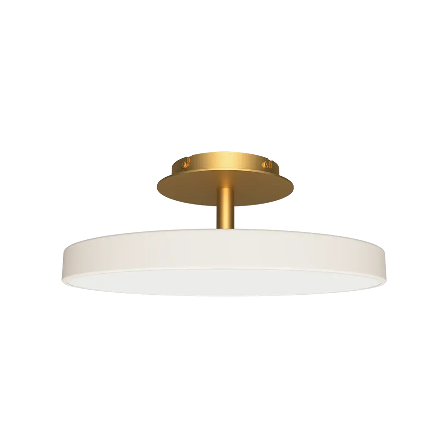 La lámpara de techo Asteria Up Medium de la marca Umage de diseño minimalista y tecnología avanzada. Fabricada en acero, aluminio y PMMA, sus medidas son 16,9 cm de altura y 43 cm de diámetro. En color blanco perla y dorado, incorpora un panel LED integrado que proporciona una luz cálida de 3000K, con una salida de 1100 lúmenes. Es regulable mediante un regulador externo y cuenta con una garantía de 10 años.