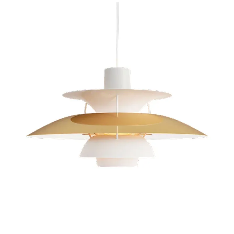 La luminaria proporciona una iluminación 100% sin deslumbramiento. En 1958, Poul Henningsen creó la lámpara PH 5, dando continuidad a su célebre sistema de tres pantallas. La luminaria proyecta tanto luz hacia abajo como luz lateral, iluminándose a sí misma. En la PH 5 Clásica, el cono rojo interior y un pequeño reflector azul aportan un tono de luz más cálido.