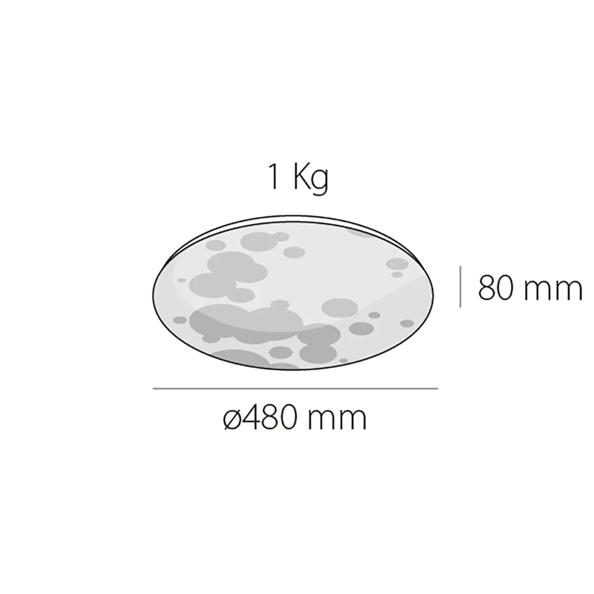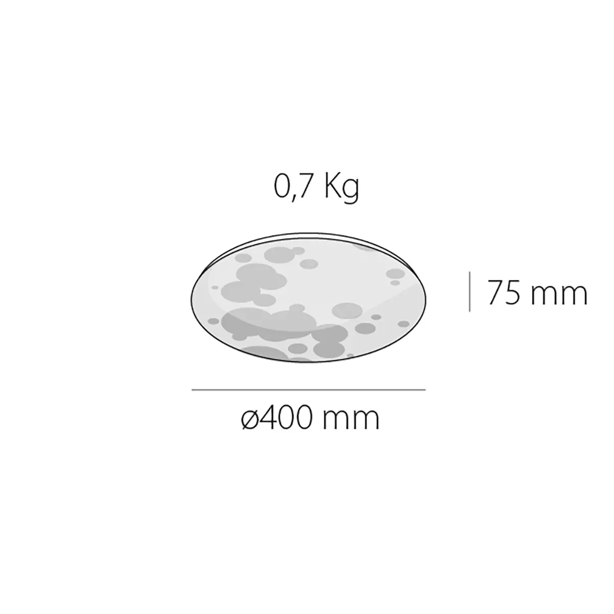 La lámpara de techo plafón LED Moon es perfecta para quienes buscan un toque de originalidad en su decoración. Con una imagen realista de la luna sobreimpresa en el difusor, este plafón aporta un diseño único y juvenil que se adapta a dormitorios o salas de estar modernas. Incluye un mando a distancia que permite regular la intensidad de la luz y cambiar escenas, creando el ambiente ideal en cualquier momento. Ideal para jóvenes o amantes del espacio, este plafón combina estética y funcionalidad.