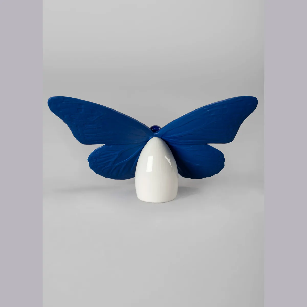 Realizada en porcelana brillo y mate, esta delicada mariposa está decorada en azul intenso con detalles en lustre dorado. Una pieza perfecta para decorar, regalar a un amante de la naturaleza y los animales o para coleccionar. Hecha a mano en los talleres de Lladró en España.