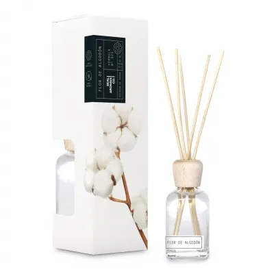 Ambientador Mikado con aroma a flor de algodón. Un aroma puro y limpio se extenderá por toda la estancia gracias a la delicada fragancia empolvada de la flor del algodón.