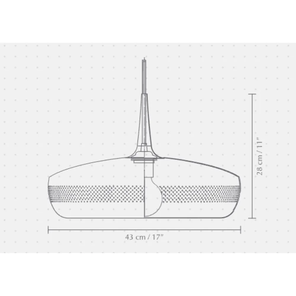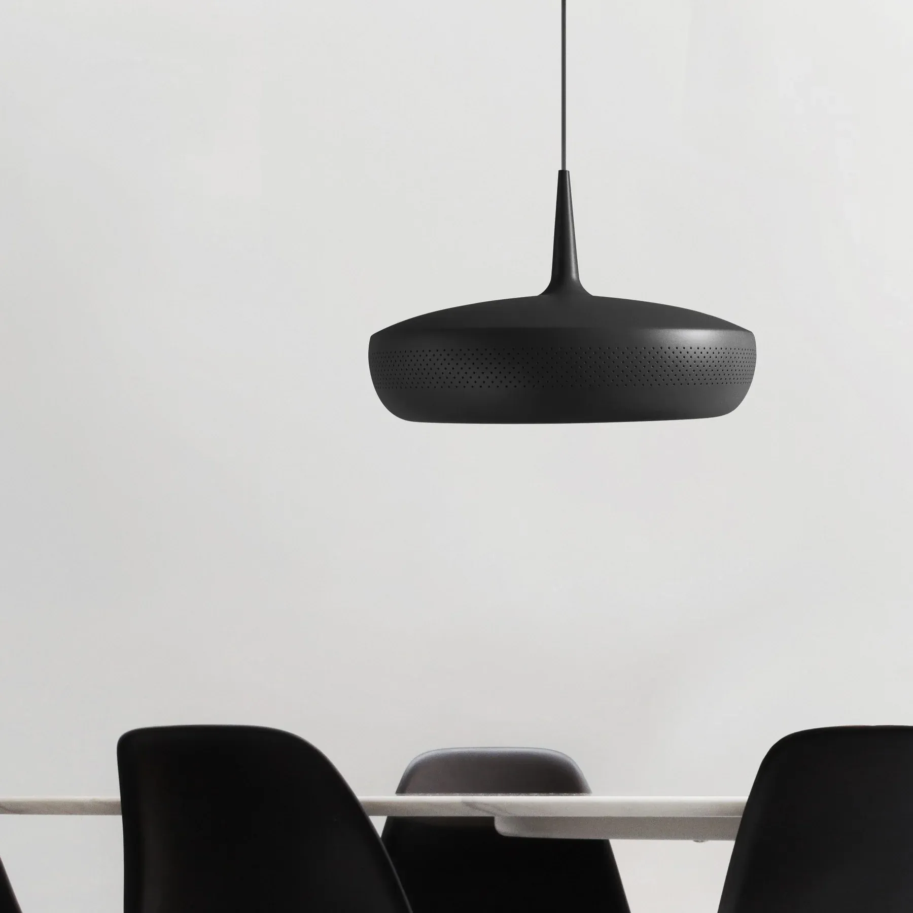 La pantalla de lámpara Clava Dine de la marca Umage, diseñada por Søren Ravn Christensen, está elaborada en aluminio con un elegante acabado negro mate. Su diseño exclusivo y moderno, inspirado en su hermana menor Clava, cuenta con un lateral microperforado que proyecta una luz ambiental suave y acogedora, ideal para cocinas y sobre mesas de comedor o centro. Esta pantalla es compatible con bombillas E26/E27 de hasta 15W LED (no incluidas). La pantalla se vende por separado, así como el cable y el portalámparas. Disponible en varios formatos.