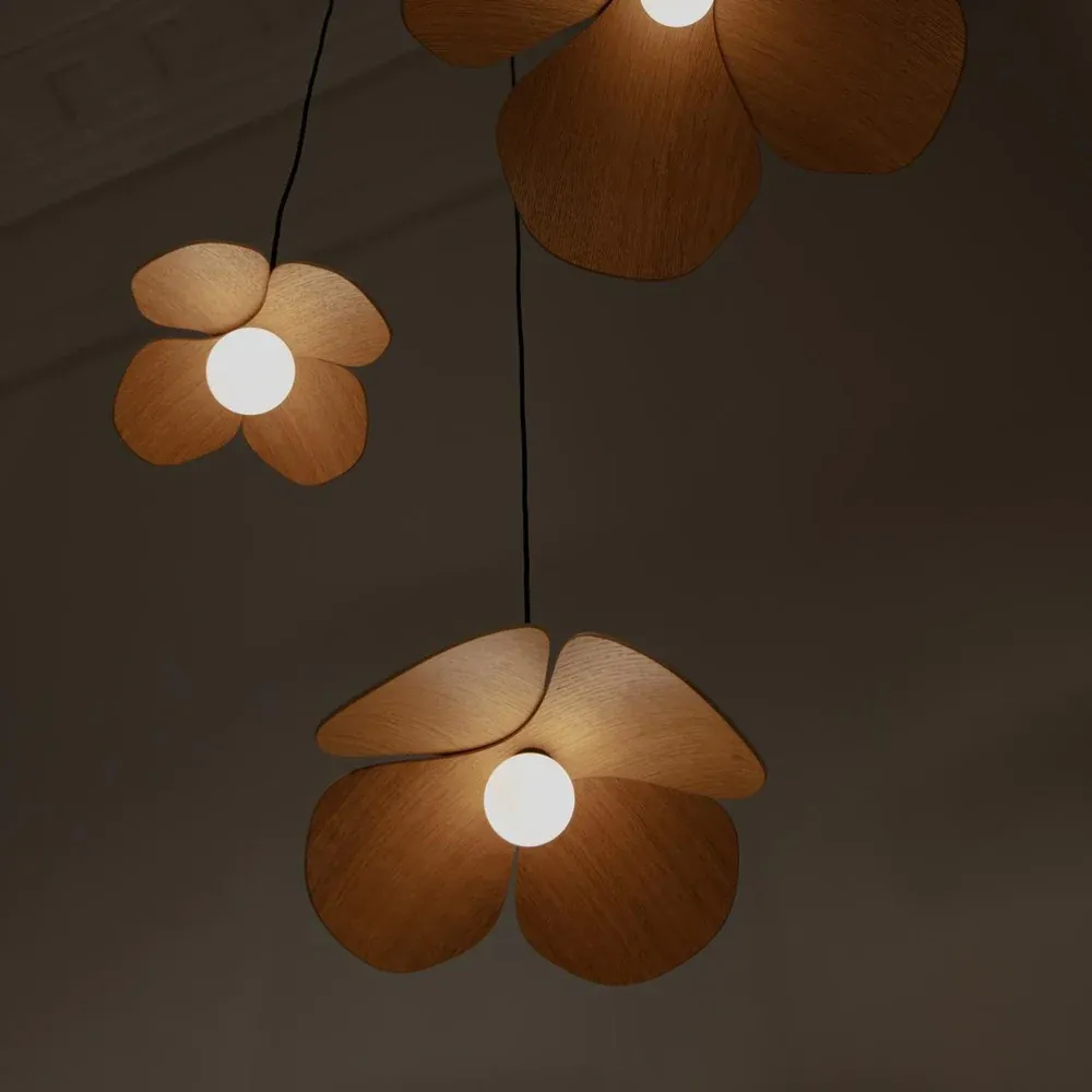 La pantalla Forget me Not Medium de Umage, en acabado roble, está inspirada en la delicada flor Nomeolvides, aportando un diseño orgánico y natural a cualquier espacio interior. Fabricada en chapa de roble, tiene un diámetro de 28 cm y una altura de 7 cm, lo que la hace perfecta para crear composiciones dinámicas cuando al combinarla con otras pantallas del mismo modelo en diferentes tamaños, usando el sistema de suspensión Rosette Mini. Es compatible con bombillas LED E26/E27 de hasta 15W (no incluidas) y ofrece una iluminación suave y acogedora.