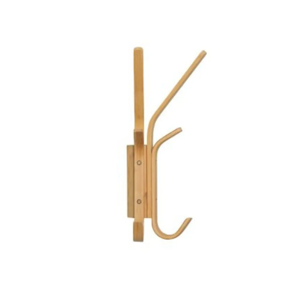 El perchero de pared Duo de la marca Hübsch está fabricado en madera de bambú, conocida por su resistencia, ligereza y flexibilidad. Con un diseño de acabado natural, este perchero añade un toque fresco y orgánico. Cuenta con seis ganchos, lo que proporciona múltiples opciones para colgar ropa, bolsos u otros accesorios y ocupa muy poco espacio en el hogar.