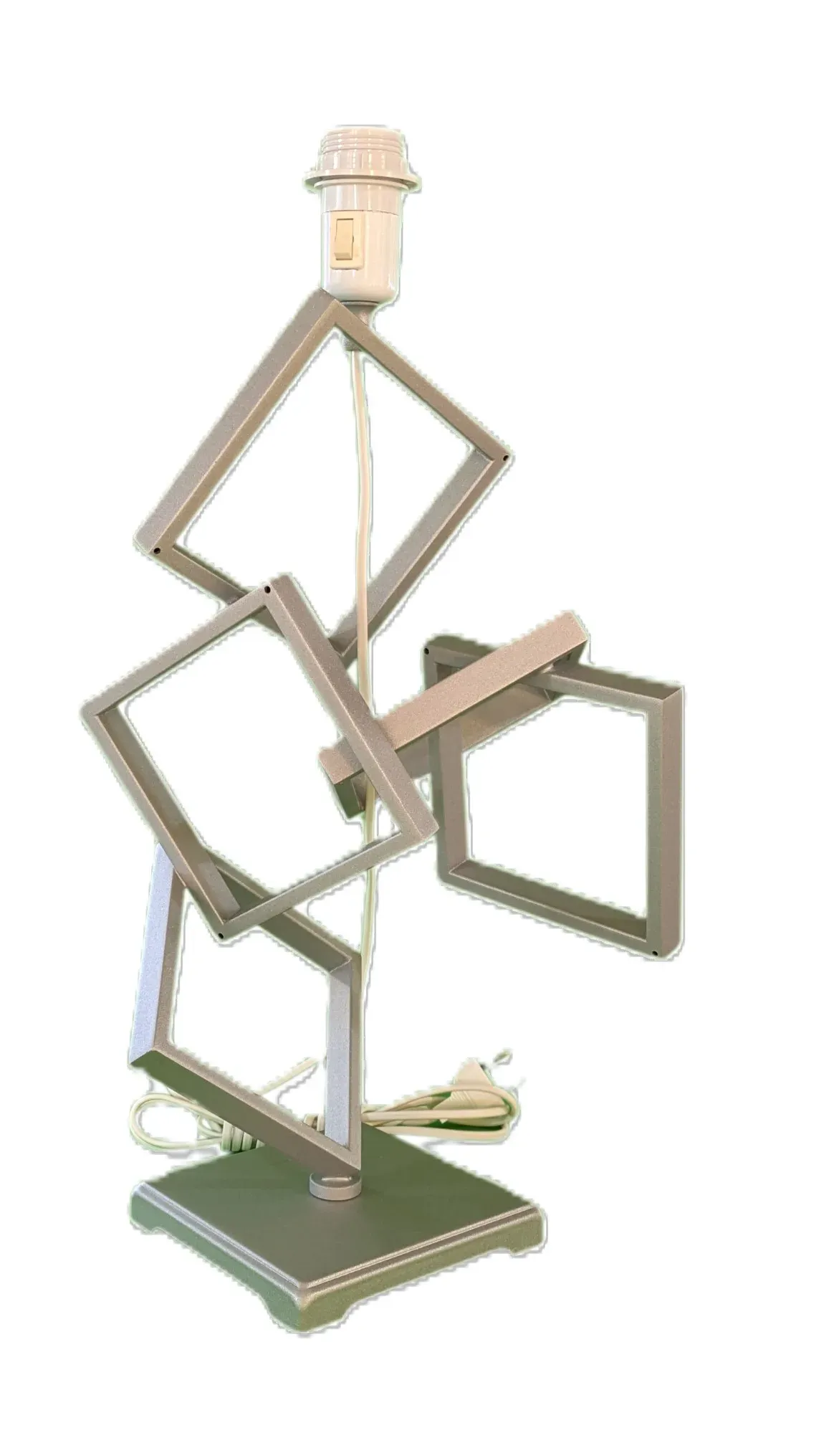 Este pie de lámpara de sobremesa con diseño geométrico es una creación moderna de Lámparas Móstoles. Su estructura de líneas y formas geométricas añade un toque contemporáneo y artístico a cualquier estancia. Fabricado con materiales de alta calidad, es perfecto para quienes buscan un estilo moderno y minimalista. Este pie de lámpara es ideal para combinar con pantallas de distintos estilos y personalizar tu espacio. Aporta elegancia y funcionalidad a tu salón, dormitorio o escritorio con esta lámpara de sobremesa de diseño geométrico de Lámparas Móstoles. Consulta nuestras pantallas para elegir la que más se ajuste a tu estilo y si no la encuentras contacta con nosotros, la haremos a tu gusto.
