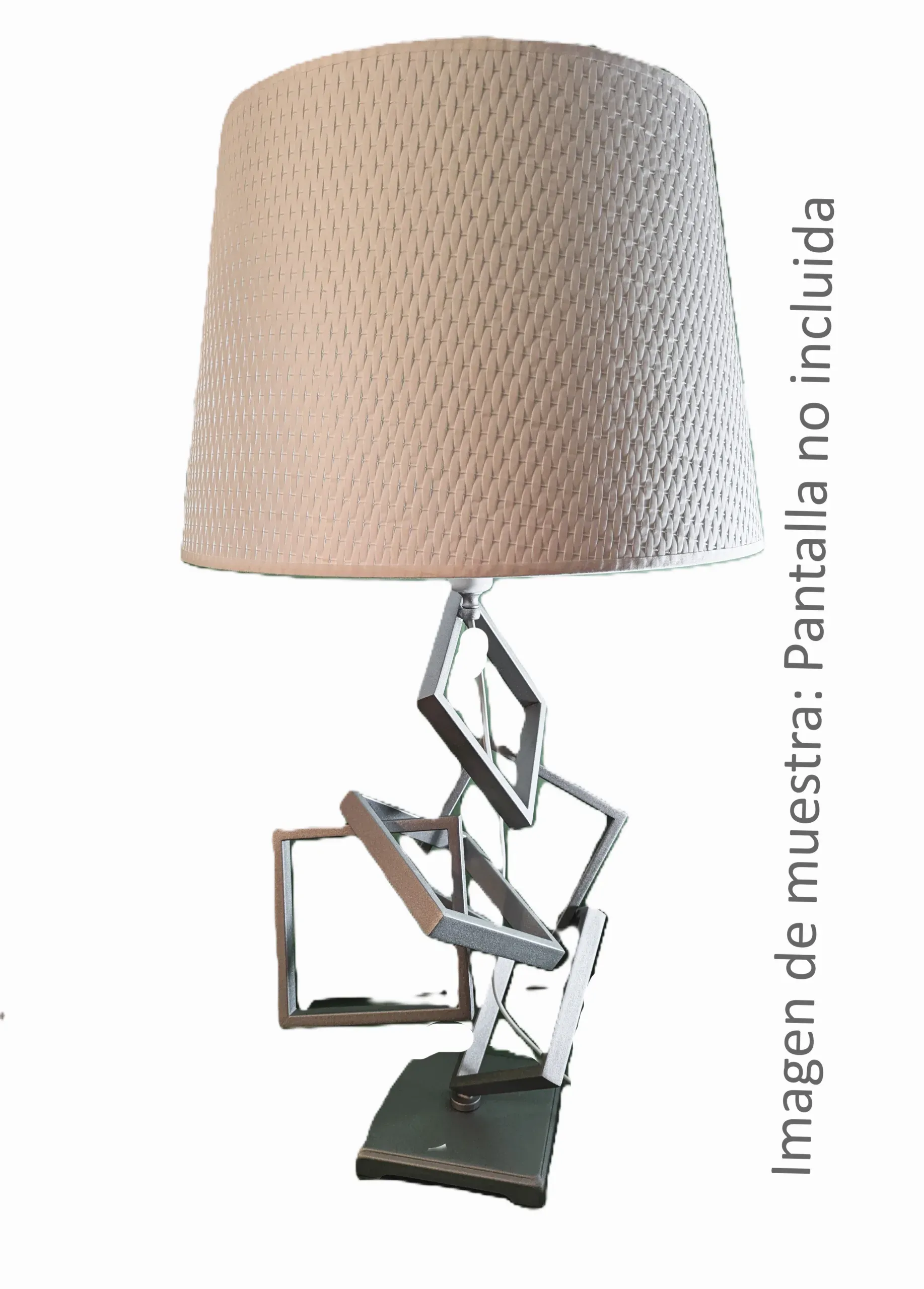 Este pie de lámpara de sobremesa con diseño geométrico es una creación moderna de Lámparas Móstoles. Su estructura de líneas y formas geométricas añade un toque contemporáneo y artístico a cualquier estancia. Fabricado con materiales de alta calidad, es perfecto para quienes buscan un estilo moderno y minimalista. Este pie de lámpara es ideal para combinar con pantallas de distintos estilos y personalizar tu espacio. Aporta elegancia y funcionalidad a tu salón, dormitorio o escritorio con esta lámpara de sobremesa de diseño geométrico de Lámparas Móstoles. Consulta nuestras pantallas para elegir la que más se ajuste a tu estilo y si no la encuentras contacta con nosotros, la haremos a tu gusto.