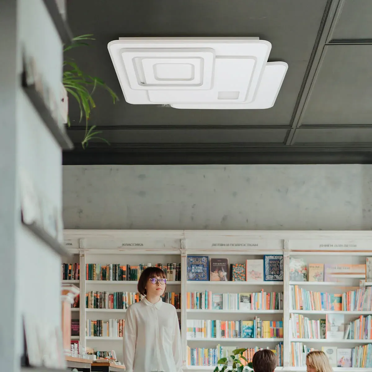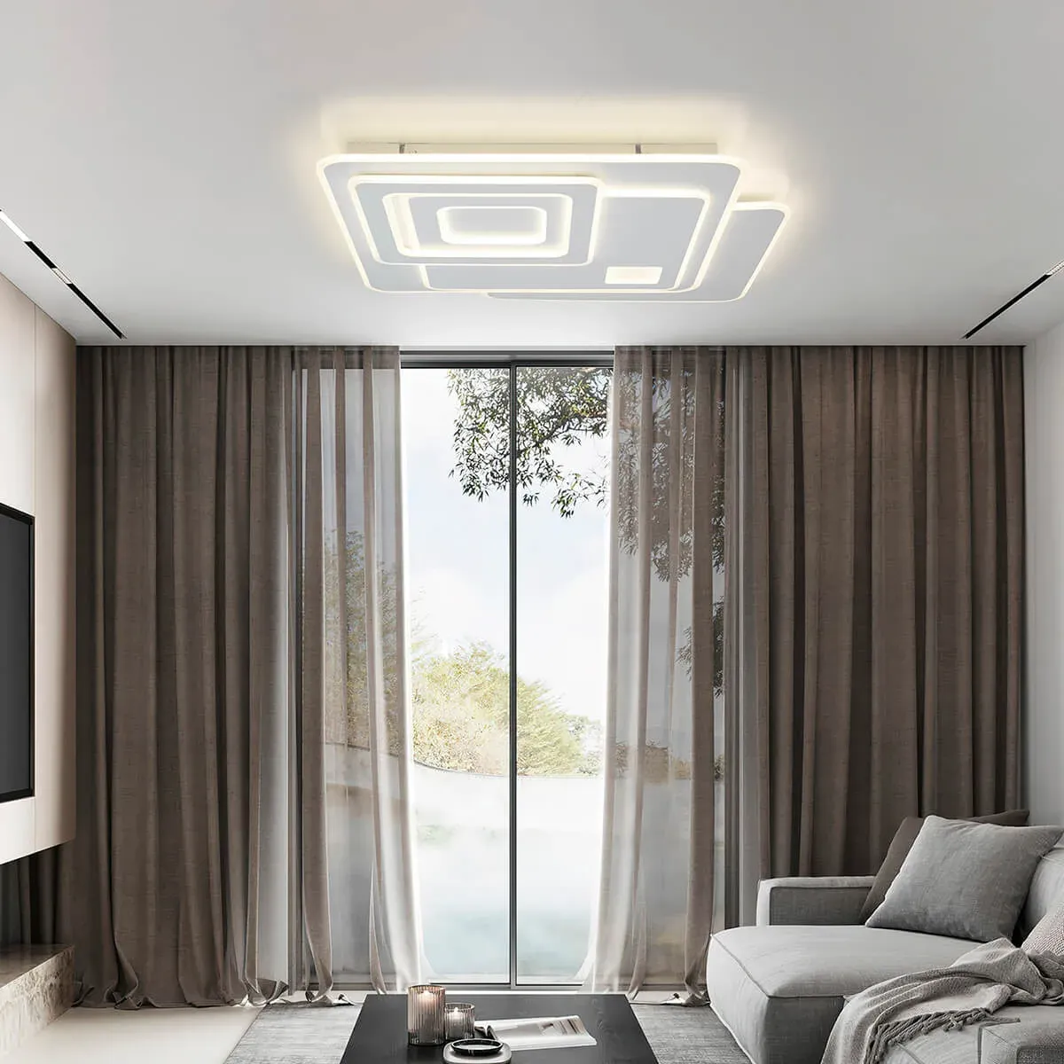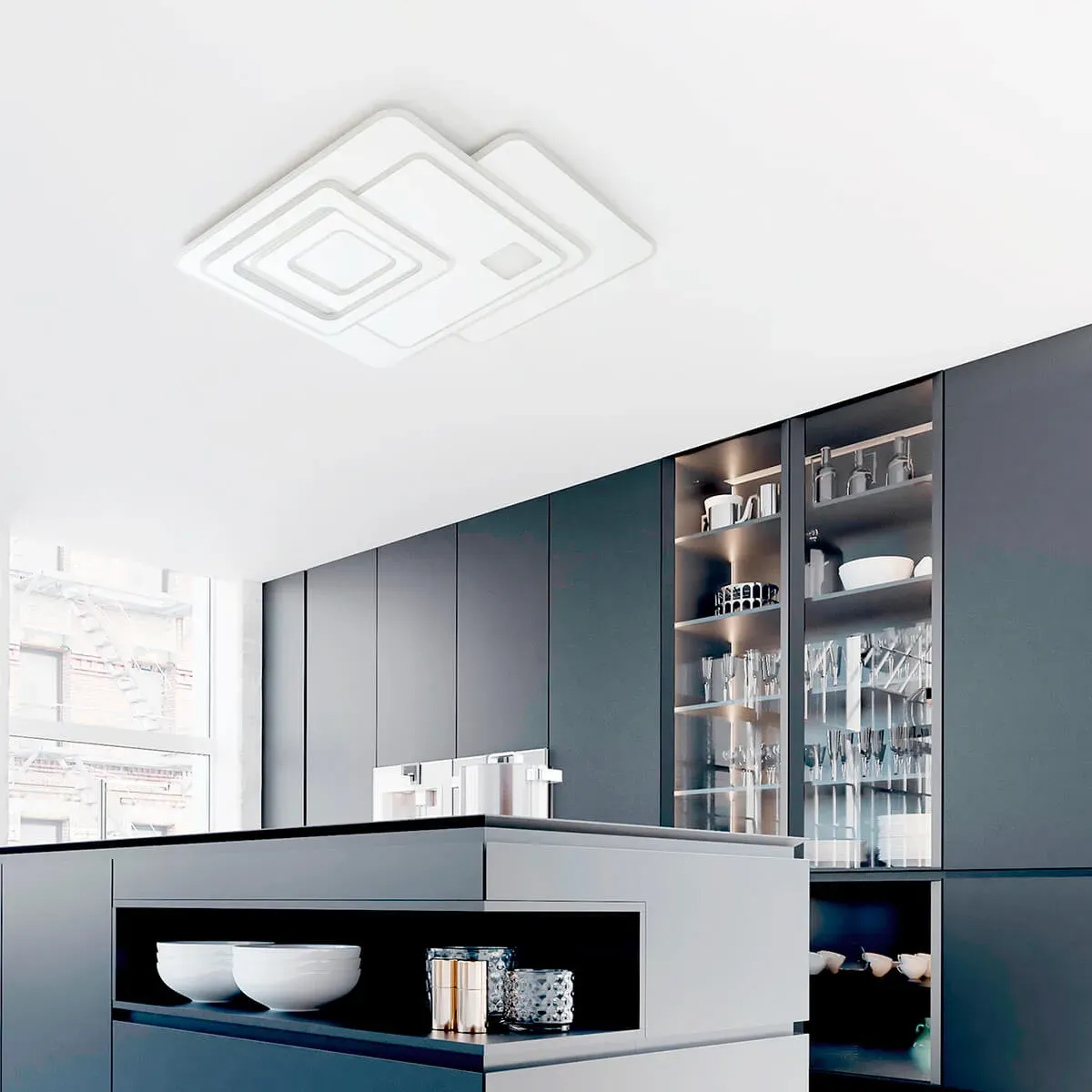 Plafón LED modelo Retro con diseño de cuadrados superpuestos en blanco