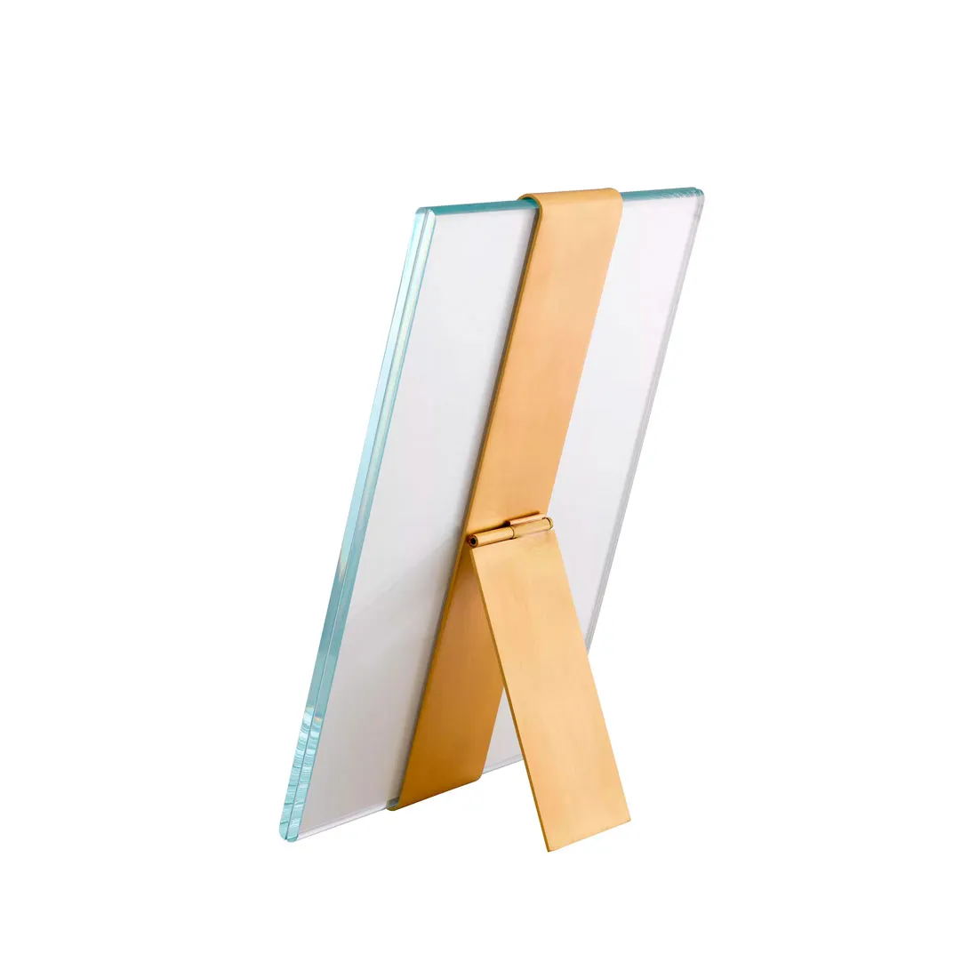 Portafotos ligero de cristal y soporte de latón cepillado. Tamaño grande.