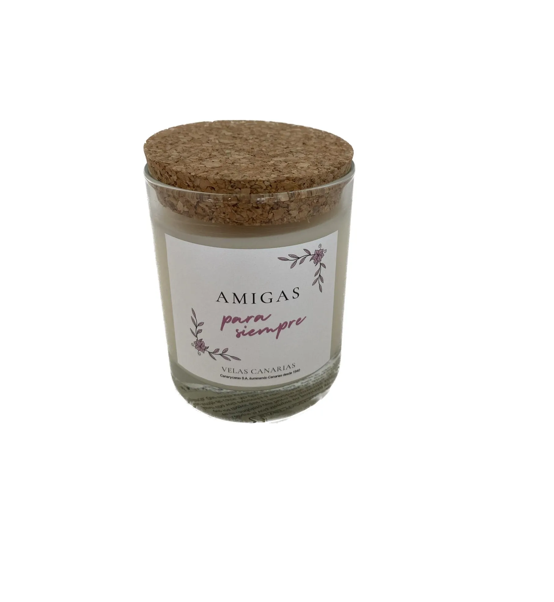 Vela en vaso vertida a mano en Tenerife con mensaje a elegir. Duración aproximada de 35h