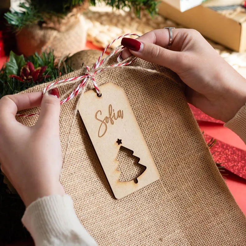 Sorprende a tus seres queridos, familiares y amigos con nuestros saquitos con etiquetas personalizadas para los regalos de Navidad. ¡Compra para toda la familia y podrás utilizarlos cada año!