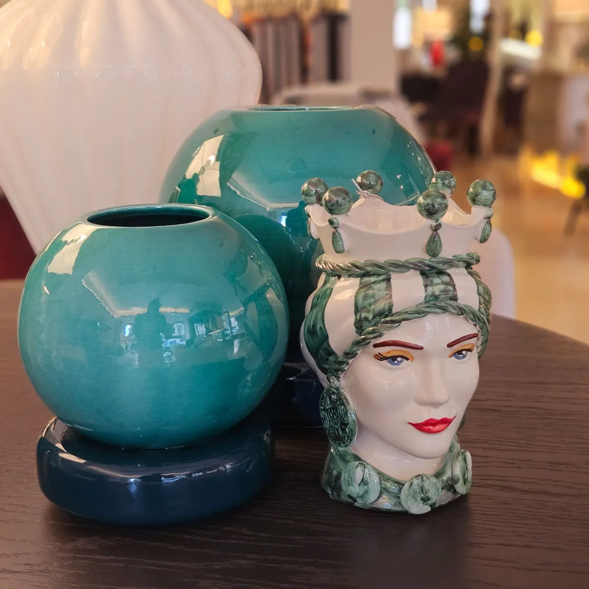 Jarrón esférico de 25cm con base bicolor de cerámica firmada Bevilacqua.