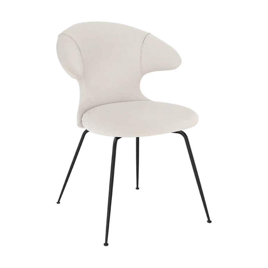 La silla Time Flies destaca por su contorno artístico. Tapizada en un tono blanco arena, ofrece una estética versátil que se adapta a cualquier espacio. Su estructura permite la personalización total, brindándole la posibilidad de cambiar la tapicería sin necesidad de reemplazar la silla, garantizando así una mayor sostenibilidad y durabilidad del diseño. Con una altura total de 83 cm y una altura de asiento de 46 cm, proporciona una postura cómoda y ergonómica. Disponible en 17 colores s, un tejido 100% reciclado, la silla se complementa con patas en acabado negro. Ponte en contacto con nosotros a través del mail si quieres personalizarla.