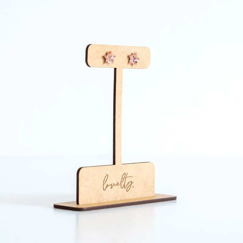 Fabricados en madera MDF, están disponibles en 2 tamaños, para 2 pares o para 8 pares de pendientes y son ideales para colocar en tu tocador, mesilla de noche o en el cuarto de baño, ¡así no tendrás miedo de perderlos!